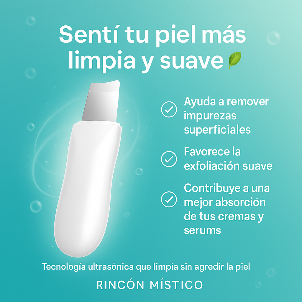 El limpiador ultrasónico de Rincón Místico remueve impurezas, exfolia suavemente y prepara tu rostro para una mejor absorción de cremas y serums. Uso diario, sin irritación—logra un glow inmediato.