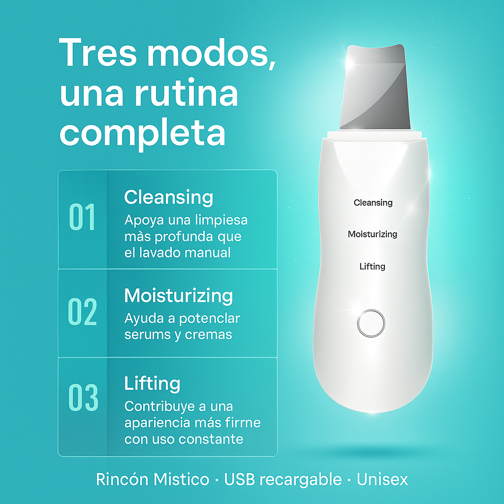 Alterna entre Cleansing, Moisturizing y Lifting para una rutina completa: limpia en profundidad, potencia tus serums y mejora la firmeza con uso constante. Recargable por USB y unisex—lista/o para ver resultados reales.