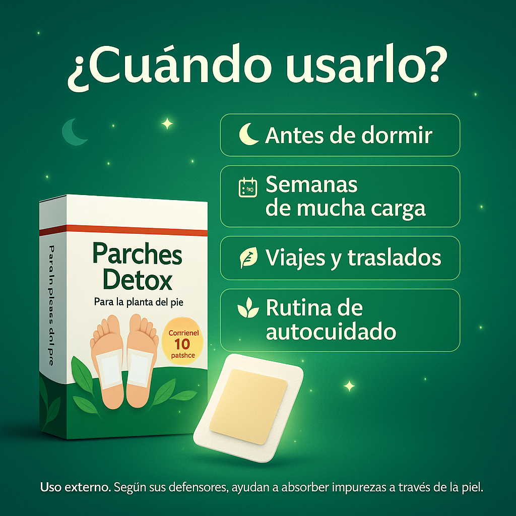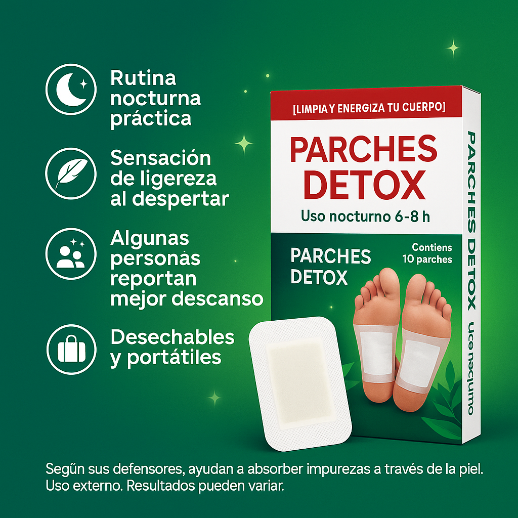 Relaja tu cuerpo mientras descansas 🌙. Los parches Detox estimulan la eliminación de toxinas y promueven un descanso profundo para que despiertes con energía y ligereza.