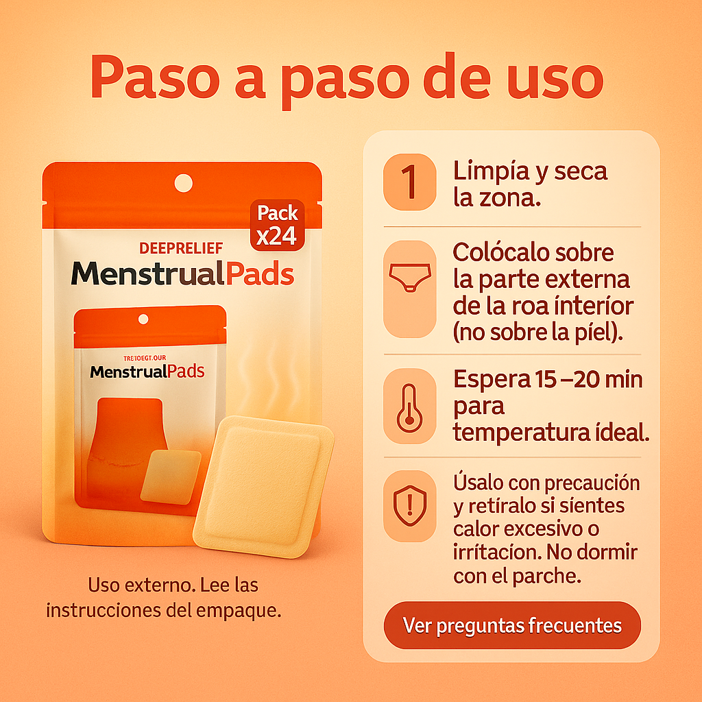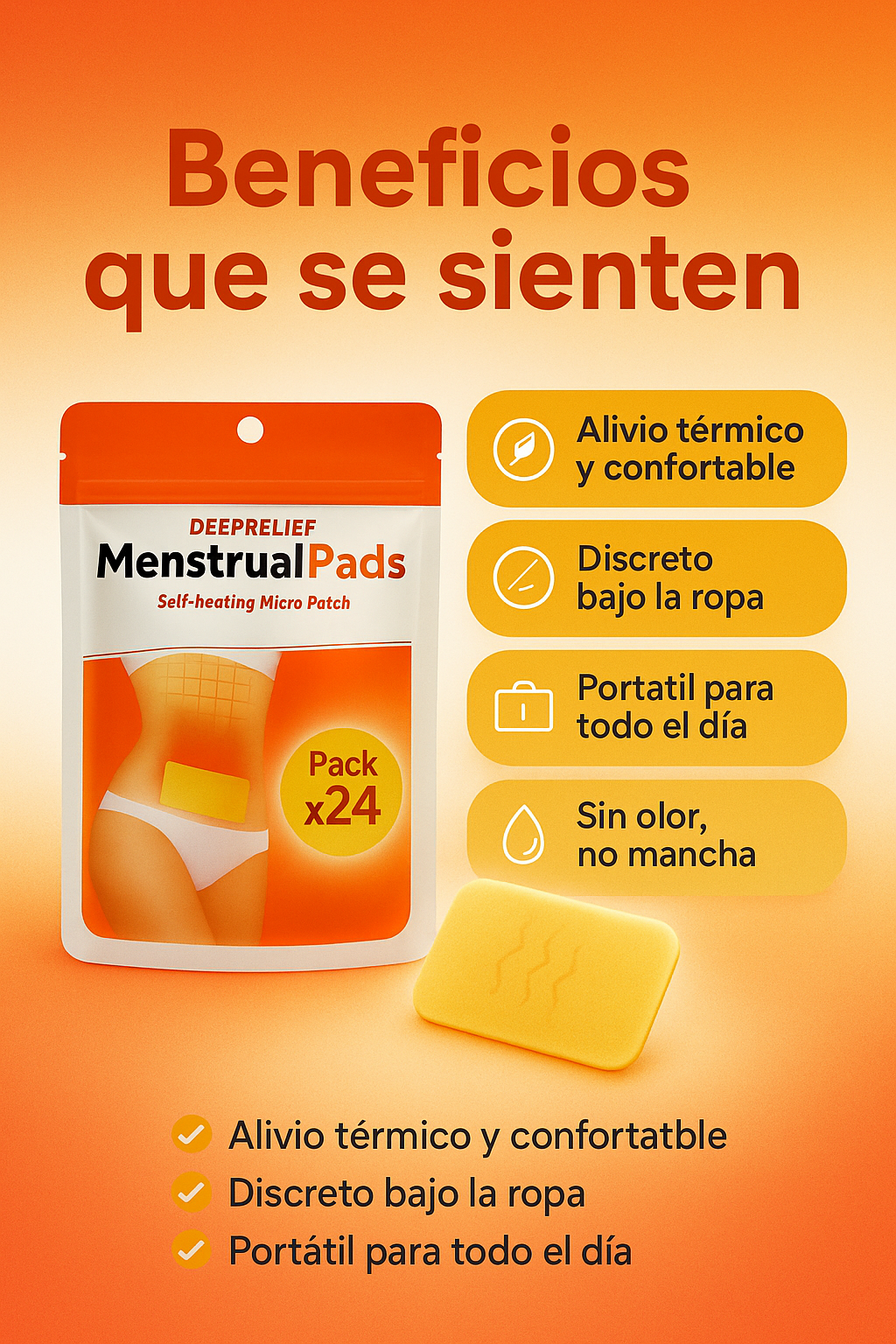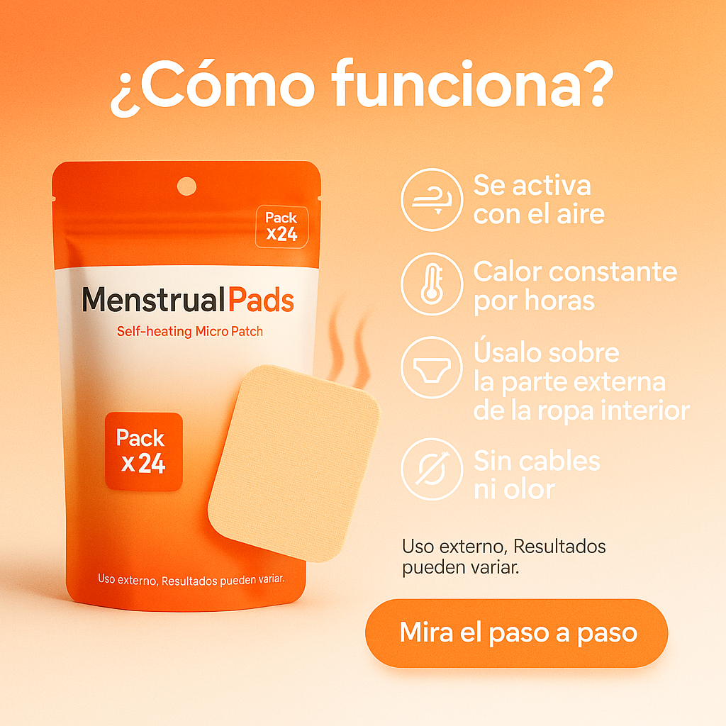 Descubre cómo este parche transforma el dolor menstrual en vitalidad. Disfruta de días sin cólicos y noches de descanso reparador gracias a su efecto de calor calmante y fórmula natural.